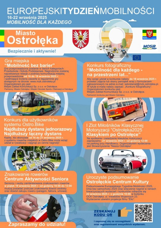 Miasto Ostrołęka oraz Miejski Zakład Komunikacji Spółka z o.o. w Ostrołęce jak co roku, aktywnie włączają się do kampanii pn. Europejski Tydzień Mobilności, organizowanej przez Ministerstwo Infrastruktury. Kampania ETM trwa od 16 do 22 września każdego roku.